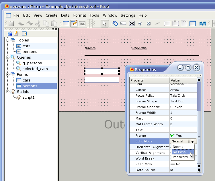 KFormDesigner application
